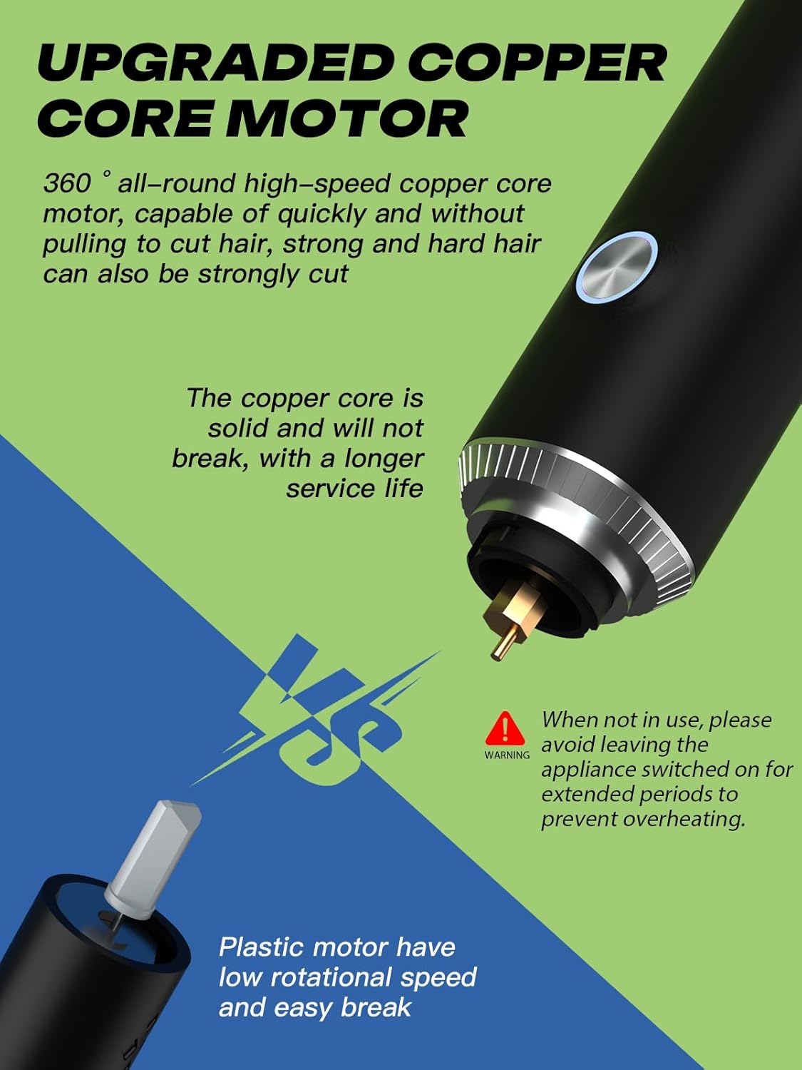 【強勁、無痛、安全】男士強勁無痛鼻毛修剪器 - 我們的鼻毛修剪器採用內置360°旋轉設計,可順暢無痛地去除鼻毛,不會拉扯。強勁的7800轉/分鐘馬達確保精準修剪,沒有任何不適感。