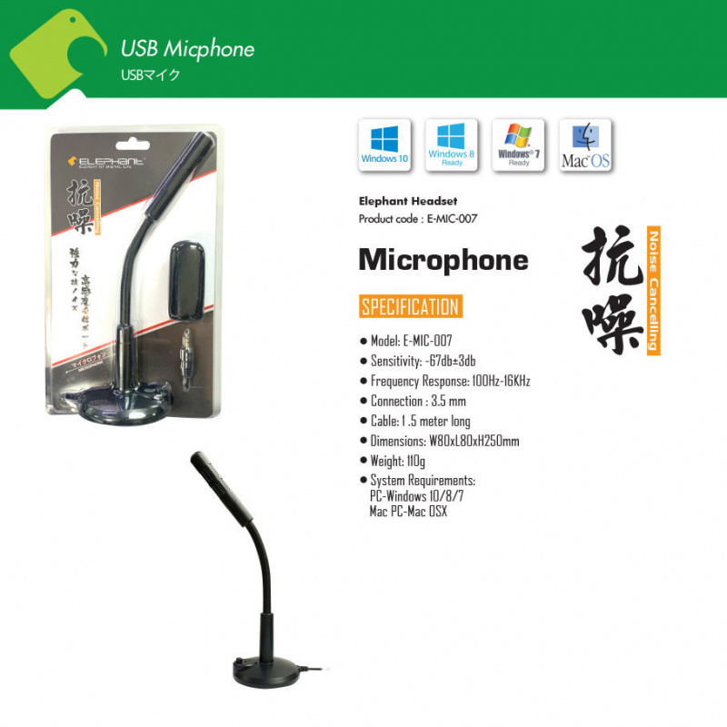 Elephant 抗噪電腦收音咪 E-MIC-007 Elephant anti-noise computer radio microphone E-MIC-007