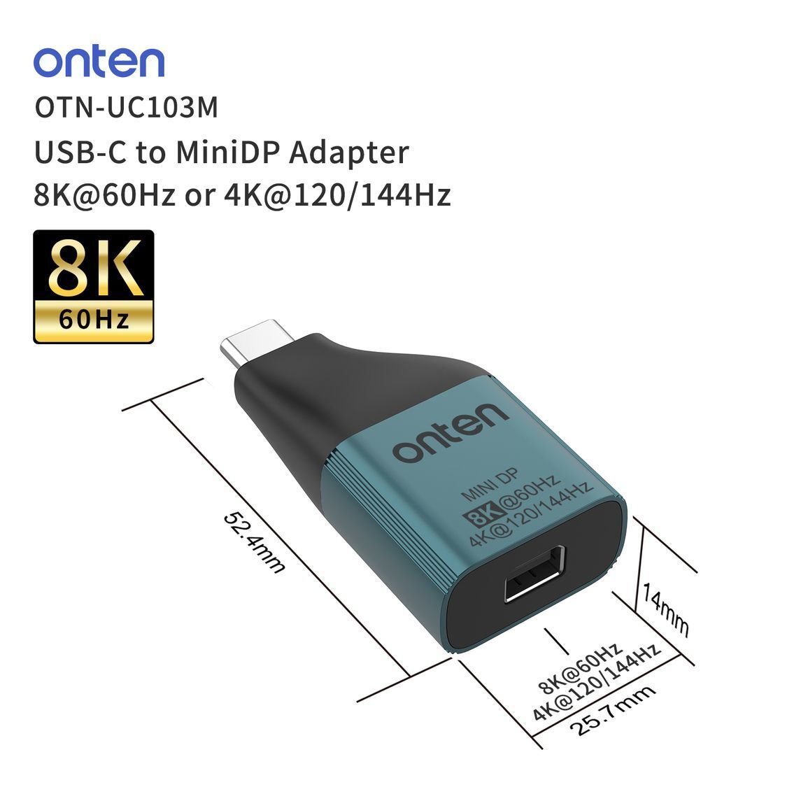 onten UC103M Type c 轉 Mini DP 顯示連接埠適配器,8k@60hz Type c to Mini DP Display Port Adapter, 8k@60hz