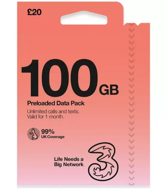 3UK - 英國及歐洲70+國家地區 5G/4G/3G上網數據Sim卡 100GB