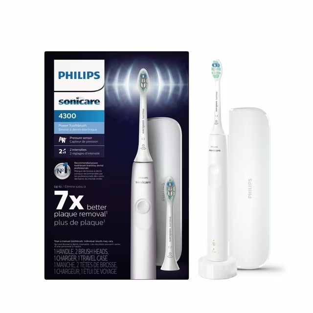 飛利浦 - Philips Sonicare 4300 充電式電動牙刷,2 個刷頭和旅行盒 HX3684/23
