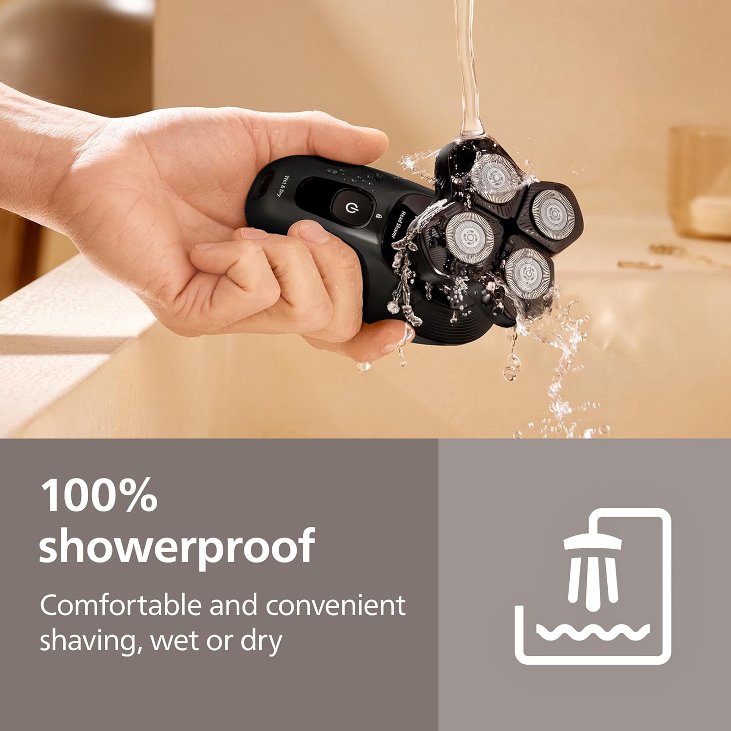 來自全球排名第一的電動刮鬍品牌¹的飛利浦男女通用刮鬍刀:飛利浦刮鬍刀Pro 5000系列,旨在提供貼面刮鬍體驗,同時呵護肌膚。 360°靈活按摩頭:這款全方位靈活的按摩頭可360°旋轉,貼合頭部輪廓,即使在難以觸及的部位也能實現最佳的皮膚接觸,同時避免造成不適和刺激。 ComfortCut 刀片:這款飛利浦男女通用刮鬍刀,為您帶來乾淨舒適的刮鬍體驗;36 個 ComfortCut 刀片可將每個鬍鬚剃至略高於皮膚表面,打造光滑均勻的刮鬍效果。 符合人體工學的設計讓您在刮鬍時保持穩固的握持;PowerAdapt感測器每秒讀取毛髮密度125次,並動態調整刮鬍力度,讓您輕鬆刮鬍。 快速方便:充電1小時即可享有60分鐘無線剃須,快速充電5分鐘即可完成一次完整剃須;IPX7級防水,配備毛髮收集系統和旅行鎖,確保安全存放和旅行。 Head shaver for men and women from the world’s No. 1 electric shaving brand¹: the Philips Head Shaver Pro 5000 Series is designed for a close shave that’s also comfortable on the skin 360° Flexing Head: the fully flexible unit rotates 360° to follow head contours for optimal skin contact even in hard-to-reach areas, while avoiding pressure that causes discomfort & irritation ComfortCut blades: enjoy a clean, comfortable shave with this Philips head shaver for women and men; 36 ComfortCut blades cut each hair just above skin level, giving you a smooth, even finish Ergonomic design helps you keep a secure grip as you shave; PowerAdapt Sensor reads hair density 125 times per second and dynamically adapts shaving power for effortless shaving Fast and easy: 60 minutes of cordless shaving on a 1-hour charge, 5-minute quick charge for 1 full shave; IPX7 water-resistant, hair collection system, travel lock to ensure safe storage and travel