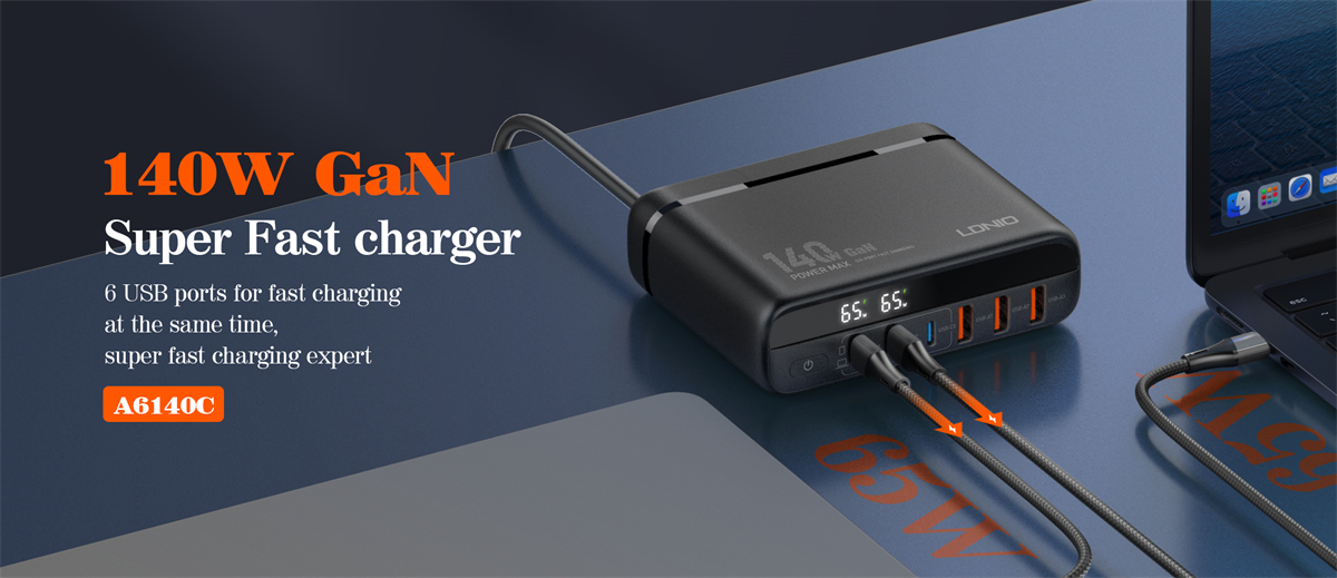 LDNIO A6140C LED Display GaN Tech 6 Ports Multi 140W GaN Super Fast Charging for Iphone Samsung MacBook Laptop Desktop Charger LDNIO A6140C LED顯示器GaN技術6埠多功能140W GaN超快充電充電器,適用於iPhone、三星、MacBook、筆記型電腦、桌上型電腦