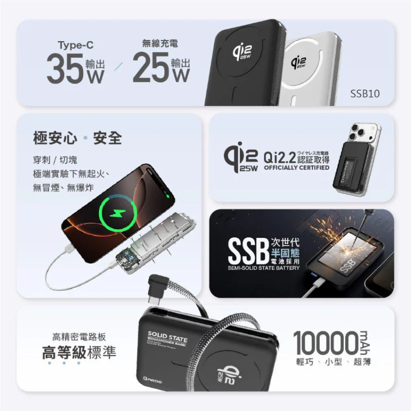 🔋 10000mAh 半固態電池 Qi2.2 25W 無線快充 35W 自帶線快充 中國CCC認證