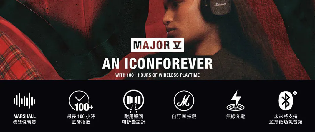 經典不會隨著時間消逝,只會歷久彌新,Major V 也不例外。從震撼的 Marshall 標誌性音質到雋永經典的外觀,這款耳機在每一處細節上都經過精心設計。Major V 擁有約 100 小時藍牙播放時間,並採用堅固耐用的可折疊設計,是你下一趟旅程的首選伴侶。