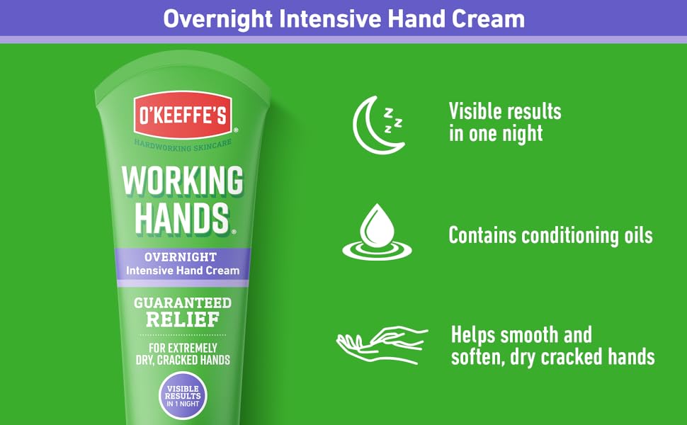 VISIBLE RESULTS IN ONE NIGHT: O’Keeffe’s Working Hands Overnight works as you sleep. It provides results you can see after just one night.