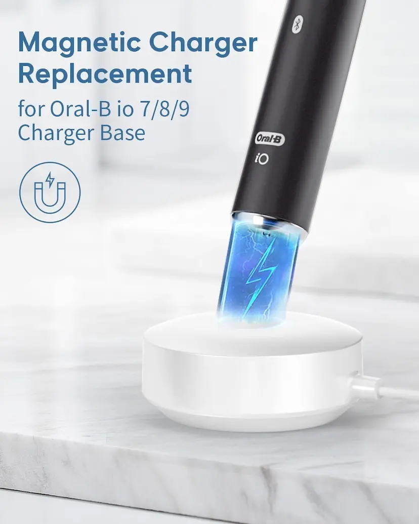 牙刷充電器替換件,兼容Oral b iO系列 7/8/9 電動牙刷。型號3768,採用快速且穩定的磁力充電技術設計,採用優質銅芯。 AC 220-240v 0.9w 與原廠充電器相同的功率 Charger Replacement for Oral-B Toothbrush Compatible With Oral-b iO Series 7/8/9 Electric Toothbrush. Ac 220-240v 0.9w Same Power As The Original Charger