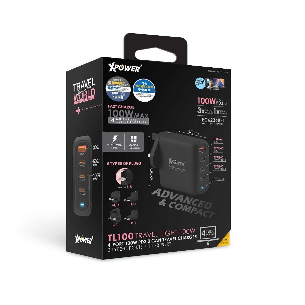 XPower TL100 Travel Light 100W 4輸出100W PD3.0 GaN 旅行充電器