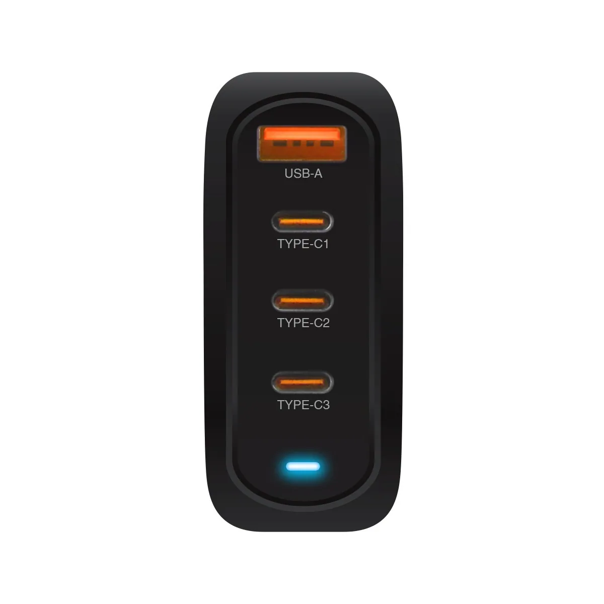 TL100 Travel Light 100W 4輸出100W PD3.0 GaN 旅行充電器 * 最高100W輸出 * 支援100W PD3.0 * 4x 輸出: 3x Type-C 和 1x USB * 可充MacBook/ notebook/ iPad/ iPhone16/ 大部份Android * GaN晶片,迷你輕巧 * 配備5種規格插頭: 英規、歐規、韓規、美規、澳規 * 安全認證,優質可靠: RoHS, CE, FCC, IEC62368-1, BS1363 * 安全保護裝置: 短路/過充/過熱/過流保護 * 輸入: AC110-240V~ 50-60Hz, 2.0A(最高) * 尺寸: W68xH69xD30 (mm) 重量: 187g